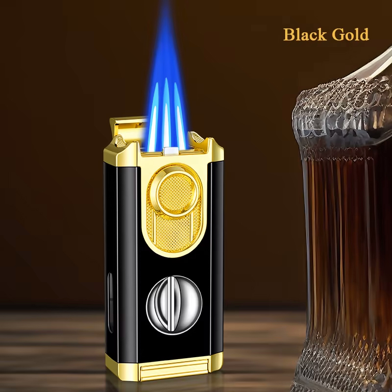 3-Jet Cigar Lighter with Integrated V-Cut Cutter and Cigar Rest Holder